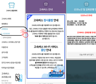 버튼을 누르면 고속버스터미널 조회 및 예매가능합니다.