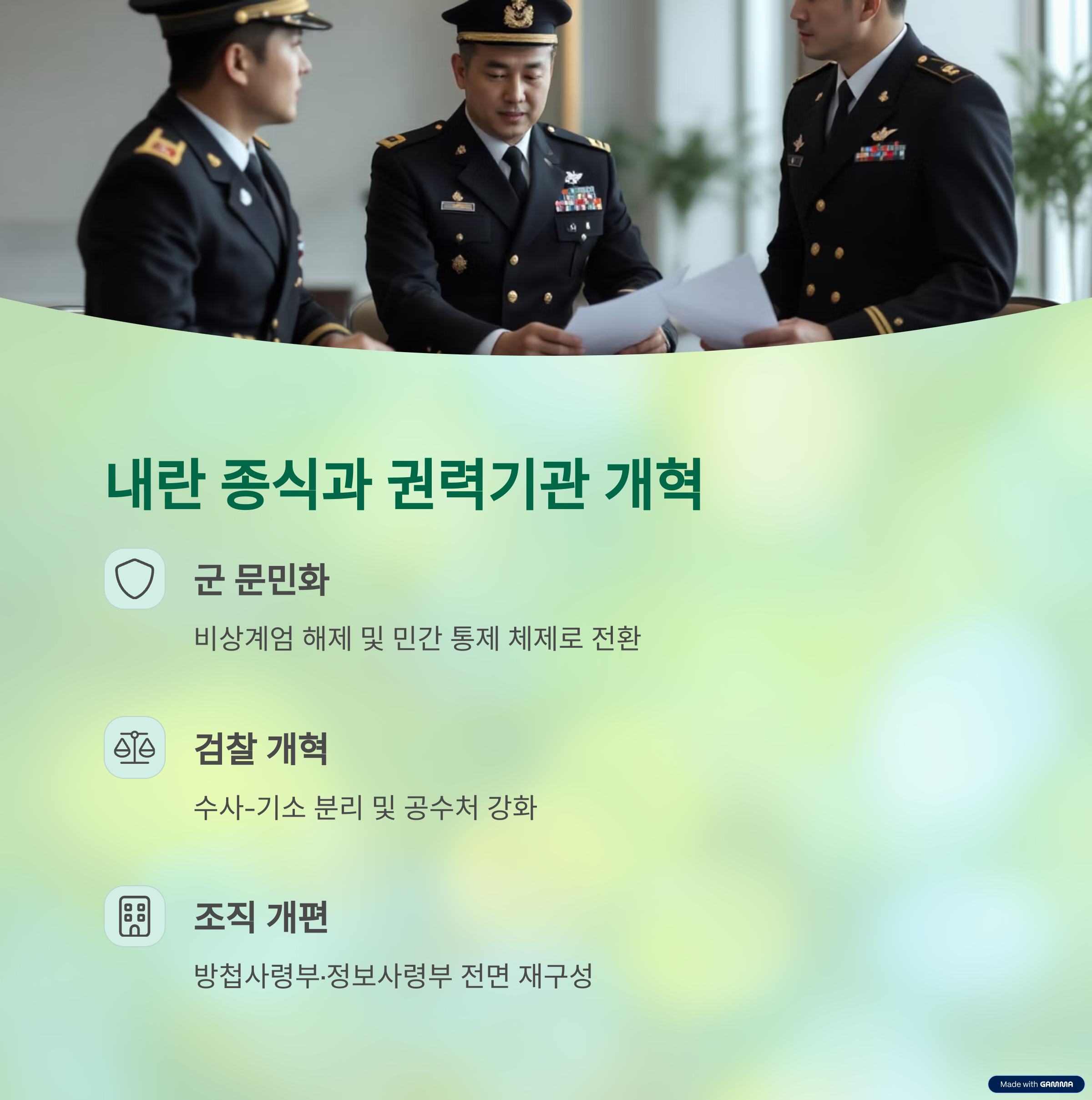 1. 내란 종식과 권력기관 개혁: 군 문민화·검찰 개혁